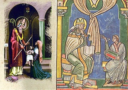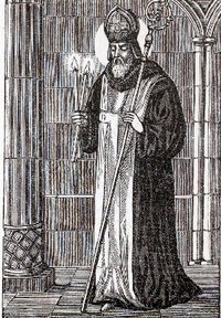 Püspöki ornátusban szokták ábrázolni, sokszor palástban, pásztorbottal, keresztbe tett gyertyákkal, néha sertésfejjel és kampókkal kínzására utalva.