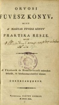 1807. március 21-én született meg élete fő műve, a Fazekas Mihállyal közösen írt Füvészkönyv. A szerzők kettős célja: Linné rendszerének alkalmazása a magyar növényvilágra és rendteremtés a magyar növénynevek eddigi zűrzavarában. Kevés eszközzel, de hangyaszorgalommal gyűjtötték a növényeket és a növényelnevezéseket. Végül hosszú évek szorgos és fárasztó munkája után született meg „a magyar füvésztudományból az első zsenge, azoknak számára, kik a növevényeket kedvelik, és azokkal esmérkedni kívánnak". A Csáthy György kiadó műhelyében elkészült 608 lapos, vaskos könyv teljes címe: Füvészkönyv, mellyel a két magyar hazában található növényeknek megismerésére vezet a Linné alkotmánya szerint. A szerzők neve még a címlapra sem került fel. 3000 példányban adták ki abban bízva, hogy az emberek vásárolni fogják, és a Kollégium diákjainak is tankönyvül szolgálhat.