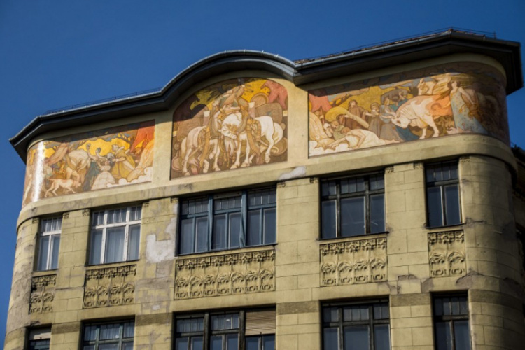 1908-ban készítette el a kőbányai polgári sörfőzde Népszínház utcai bérházának homlokzatát díszítő mozaikfríz tervét, amelyet Róth Miksa valósított meg. A pályázat által előírt feladat: a sörfőzde által előállított három sörfajtának, a király-, polgár- és barátsörnek dicsérete. Ez a frivol és köznapi tárgy megkapó és költői képet öltött Dudits művészetében.