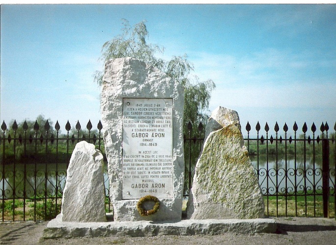 Gábor Áron, a cselekvési lehetőségeket kereső és megtaláló, tehetségét gazdagon kamatoztató, leleményes, szavaival szólva „a mesterségek fortélyaiban" járatos ágyúöntőként és a forradalom ügyéért életét áldozó hős tüzértisztként él népe emlékezetében. Hősi halála pillanatától kezdve visszaemlékezések, emlékiratok, tudományos feldolgozások és szépirodalmi művek idézik, illetve örökítik meg életét és példáját. Noha római katolikus volt, földi maradványainak végső nyughelye a végzetes csatatérhez közeli Eresztevény református templomának kertjében található. Gyorsan kellett eltemetni, mert a szájhagyomány szerint oroszok példát akartak statuálni a holttesten. Amikor a „kozákok" megtudták, hogy Gábor Áron ott nyugszik, lovaikkal megtaposták a templom kertjét. A sír sokáig jeltelen volt, a ma is látható emlékművet 1892-ben állították fel a feltételezett sírhant közelében. A szobor és emlékmű állítás szép példáját sok más település is követte.