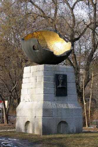 Budapesti szobra Kiss Sándor szobrászművész alkotása. Egy csonka gúlán szétrobbant ágyúgolyót formáz. Az ágyúgolyó kívül fekete, míg a felfedett belseje arannyal futtatott. Ez az aranyozás állít emléket a vérbefojtott szabadságharcnak és a legendás ágyúöntő tüzértisztjének.
