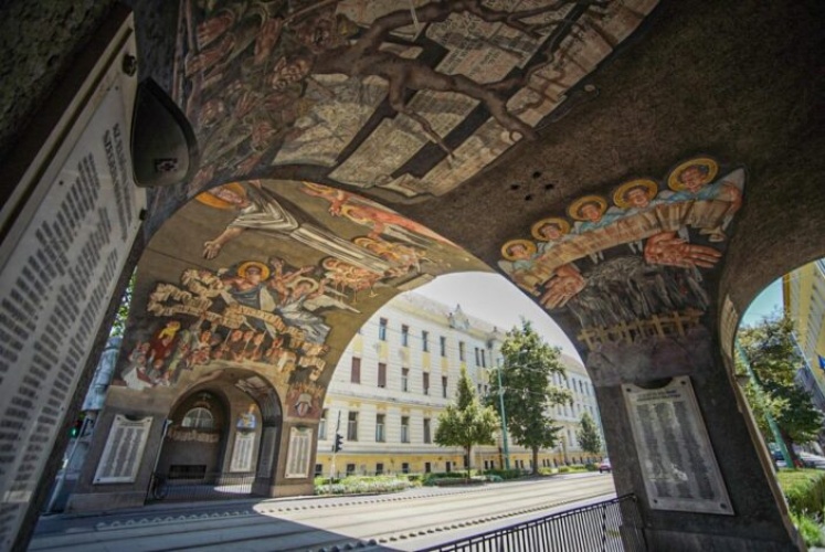1936-ban épült Európa legnagyobb szabadtéri freskója, a szegedi neoklasszicista stílusú Hősök kapuja (Porta Heroum). Az alkotás az I. világháborúban elesett 12000 szegedi katonának állít emléket. A honvédszobrok, vagyis az élő és halott katonák Lőte Éva szobrászművész alkotásai. A boltív freskóit Aba-Novák Vilmos készítette. A freskók három témakört ölelnek fel: a hősi halottak dicsőítése, a háborús megemlékezés, valamint Horthy Miklós Szegedről való elindulása. Az alkotás centrumában egy monumentális Krisztus kép áll. Ez a hatalmas és értékes alkotás több mint 5 évtizedig be volt vakolva, rejtve volt a kíváncsiskodó tekintetek elől, mert előbb 1945-ben Horthy alakját, majd négy évvel később az egészet bevakolták. A kapu freskóit azonban 2000. augusztusára a millenniumra sikerült az eredeti állapotára restaurálni.