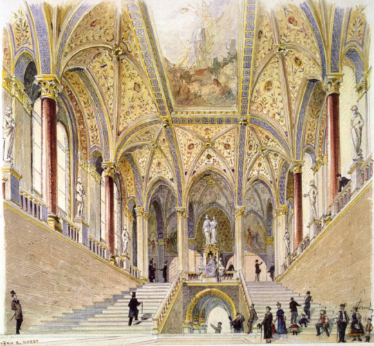 „Én az új országháznál új stílust nem akartam teremteni, mert kőbe alkalmazható építészeti formáink nemzeties jellegének nyoma sincs sehol s egy ilyen századokra szóló monumentális épületet ephemer részletekkel kezelhettem, hanem igenis arra törekedtem, hogy a középkornak a remek stílusába szerény módon, óvatosan, mint azt a művészet mindenkor okvetlenül megkívánja, nemzeti és egyéni szellemet hozzak be. E czélból eddig létező síkdíszítményeink összes motívumait, falfelületek, boltfelületek, stb díszítésére a góth stílus szellemében használtam fel, hazánk flóráját, mezőink, erdőink és rónáink növényzetét, annak formáit pedig többé kevésbé stilizálva alkalmaztam, így például építészeti tagozatoknál, mint amilyenek a fejezetek, eltértem a góth stílus szigorú modorától, nevezetesen az építészetben annyiszor alkalmazott acanthus levelet saját felfogásom szerint kezeltettem a szobrász által a kivel felfogásomat szerencsésen megértetnem sikerült is.”