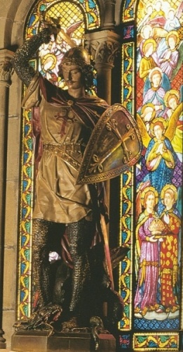 Sárkányölő Szent György története - bár korábban többször is apokriffé nyilvánították - végleg kanonizált formájában csak a 12. század folyamán vált közismertté. A legenda szerint egy líbiai várost szabadított meg a sárkánytól, amely hosszú ideje zsarolta azt. A középkorban a sárkány lefejezése a gonosz felett aratott győzelem szimbóluma lett, s egyben a fény ősi szimbolikájával is összekapcsolódott.