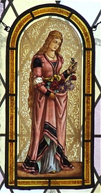 „Amikor férje meghalt, azt mondta: Uram, Istenem, számomra most már az egész világ meghalt. Fájdalommal telve borult a koporsóra, és így imádkozott: „Istenem, te tudod, mennyire szerettem az uramat. Odaadnám érte az egész világot, ha visszanyerhetném. De akaratod ellenére nem akarom visszahívni még akkor sem, ha csak néhány hajszálamat kellene adnom érte". A kislány kolostorban nevelkedett, később szabad döntéssel választotta a szerzetesi hivatást, és mindenben édesanyja hűséges követőjévé vált. Mint apátnő 50 évig szolgálta a kolostori közösséget. IV. Kelemen pápa avatta a boldogok sorába.