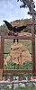 Két ősi magyar szimbólum a "Turul", és a "Csodaszarvas" egy székely gyalogkapu mellett.