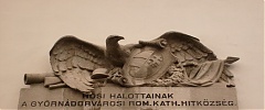 A római katolikus templom falán helyezték el Kisfaludi Stróbl Zsigmond alkotását, a koronával és turullal ékesített első világháborús emléktáblát. 53 hősi halottnak állít emléket. II. világháborús emléktábla kapcsolódik hozzá.