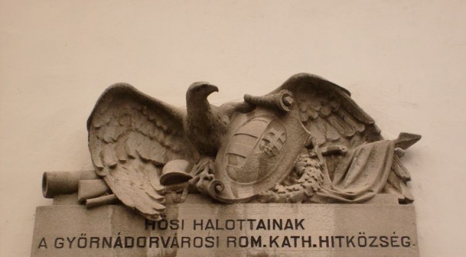 A Szent Kamillus templom északi oldalfalán látható a márványtábla díszes kőkeretben, turul, országcímer, fegyverek és katonasisak díszítéssel. A nádorvárosi római katolikus hitközség emelte emléktáblát 1926. június 29-én avatták fel, melyet Horváth Adorján (1874-1943) mintázott, Birkmayer László (1885-1970) faragott.
