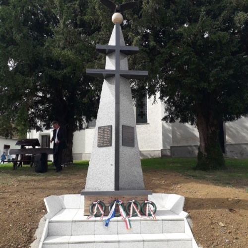 A Római katolikus templom mellett 1924. június 1-én avatott emlékmű, Hudetz József szombathelyi kőfaragó alkotása. Az első világháború 11 helyi hősi halottjának állít emléket. 1989-ben kiegészítették a második világháború áldozatainak neveivel.