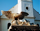 Ősi jelképeinket (kettős kereszt, árpádsáv, szalagfonat, turul) bemutató összeállítás a település központjában.